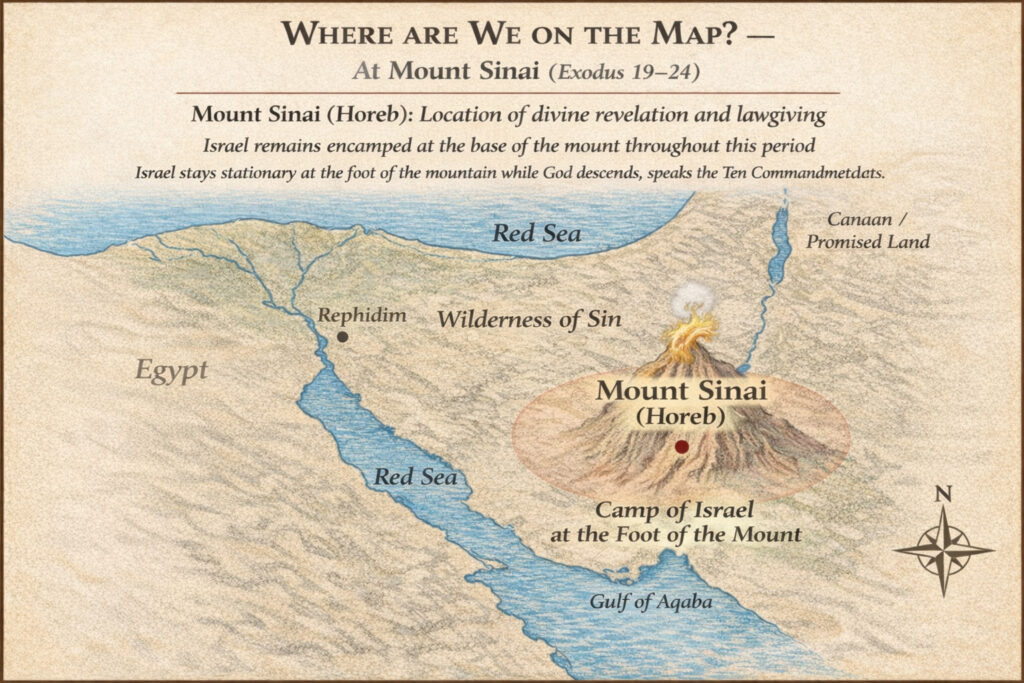 - Setting: Israel encamped at Sinai following arrival from Egypt (Exod 19:1–2)
